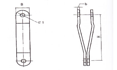 型联板用于双联耐张绝缘子串与单根导线组装、单串绝缘子与双根导线组装、双根拉线的组装、单串绝缘子双支点悬垂线夹的组装等。主要用于双支点悬垂线夹的组装,以及需要L型联板组装的地方。