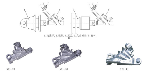 NXL系列楔型铝合金耐张线夹,适用于20KV配电线路中,通过绝缘子等将架空导线固定在分段或终端耐张杆上,并将架空导线拉紧,绝缘罩与耐张线夹配套使用,起绝缘防护作用。