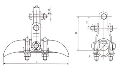 线夹本体和压板为可锻铸铁件,闭口销为不锈钢制件,其余为钢制件、可锻铸铁件和钢制件热镀锌