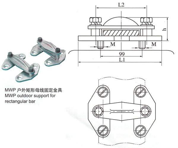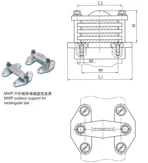 2)户外二片矩形母线固定金具(平放式)