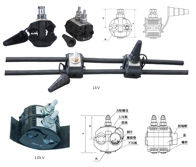 JBC(1kV)系列穿刺线夹适用于1kV及以下架空绝缘导线的支接和接续。