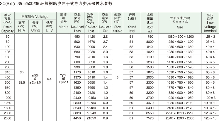 •机械强度高.抗短路能力强,局部放电小,热稳定性好,可靠性高,使用寿命长。 •低损耗、低哚音,节能效果明显,免维护。