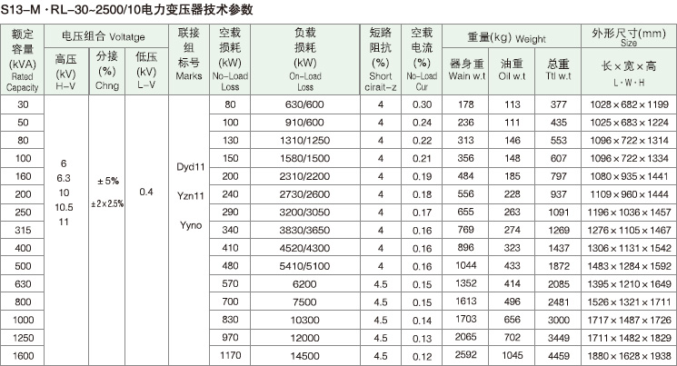 S13-MR-30~2500/10 (三角形立体卷铁心变压器)