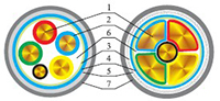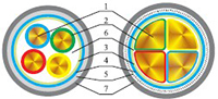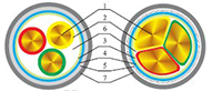 1、导体 2、绝缘 3、包带 4、内衬层 5、铠装层(钢带、钢丝) 6、填充 7、外护套 |