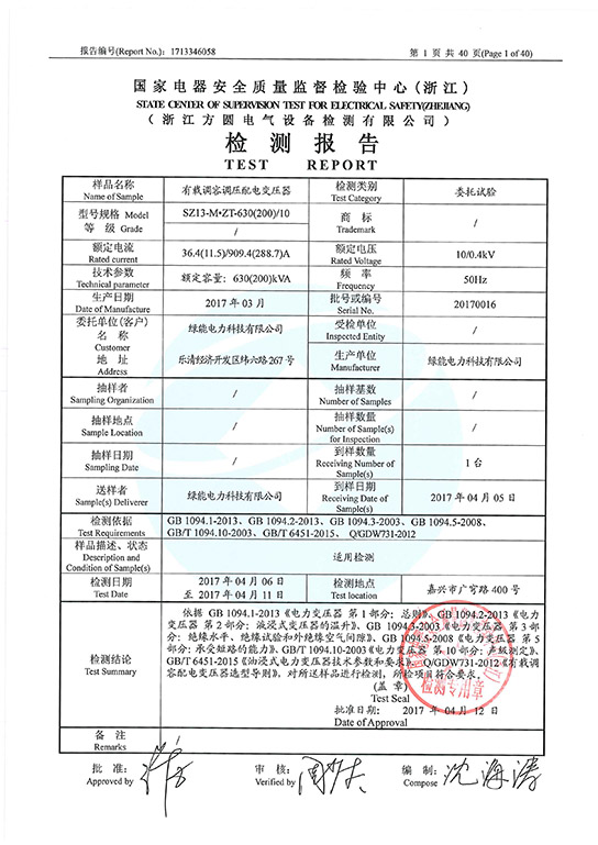 热烈庆祝绿能电力获得了调容调压变压器资质证书